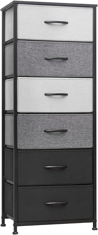 - 6 DRAWERS CHEST: Features 6 removable drawers; Use in or out of the closet and keep clutter under control by storing all of your clothing and accessories in one convenient place; Store and organize workout gear, leggings, yoga pants, sweaters, linens and more; The vertical design fits easily in many locations throughout the home; Use as a nightstand to put your alarm clock, journal, glasses; Mix & match with other storage organizers for endless organizational possibilities.